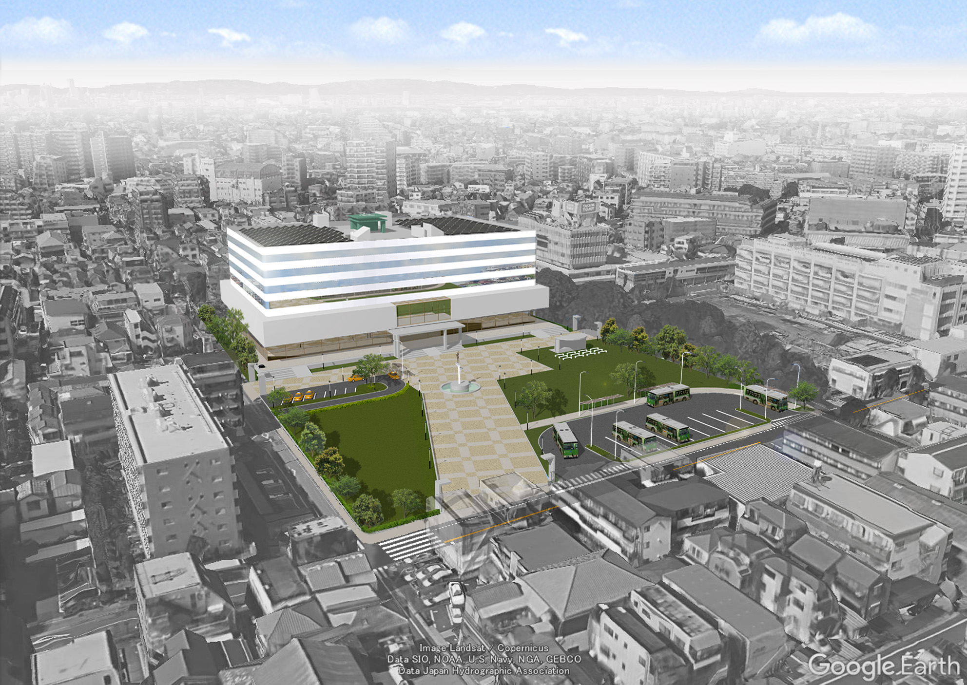 右は、青戸平和公園裏の広場に新区役所を整備する私案です。最寄り駅は青砥駅であり、特急も停車するため利便性が高くなります。そして、現在の葛飾区役所がある場所を公園にし、緑が減らないよう配慮します。
